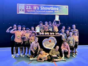 Am Samstag, den 8. November 2025, nahmen die Stützpunktturner bei der Veranstaltung des Pfälzer Turnerbundes, „Itˋs Showtime“, in Rodalben teil. Mit ihrer „Lederhosengaudi“ zu den Klängen von VOXXCLUB begeisterten die Stützis das Publikum und die mitgereisten Fans. Am Ende schafften es die Buam, unter 10 teilnehmenden Gruppen der Klasse „offene Klasse“, auf den sensationellen zweiten Platz mit der Bewertung „Ausgezeichnet“. Ein super Erfolg für die Stützpunktturner! Dadurch haben sie sich für die Teilnahme am „Rendezvous der Besten“ in Ludwigshafen am 29.11.2025 qualifiziert. Ein Dank geht an die Trainer Jochen, Adrian, Andi und Max, die beiden Trainerinnen Tine und Lin, das Dekoteam und die mitgereisten Fans für die lautstarke Unterstützung.