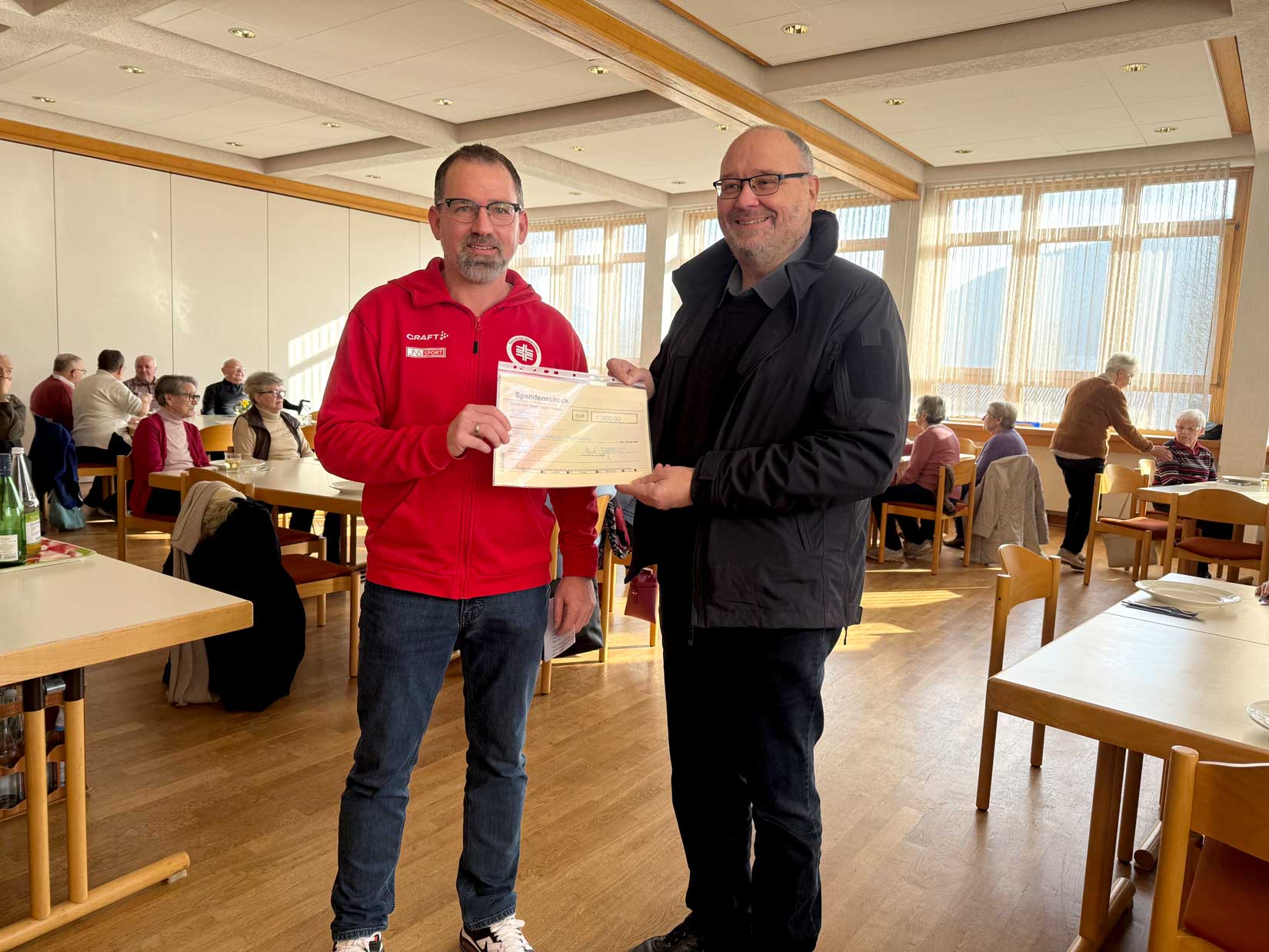 Heute überreichte der Vorstandsvorsitzende des Turnvereins, Alexander Meyer, den Spendenerlös aus dem Lebenslauf 2025 an die Johann-Naab-Stiftung. Die Übergabe fand im Rahmen des gemeinsamen Mittagstisches der Seniorinnen und Senioren im Pfarrheim statt.
