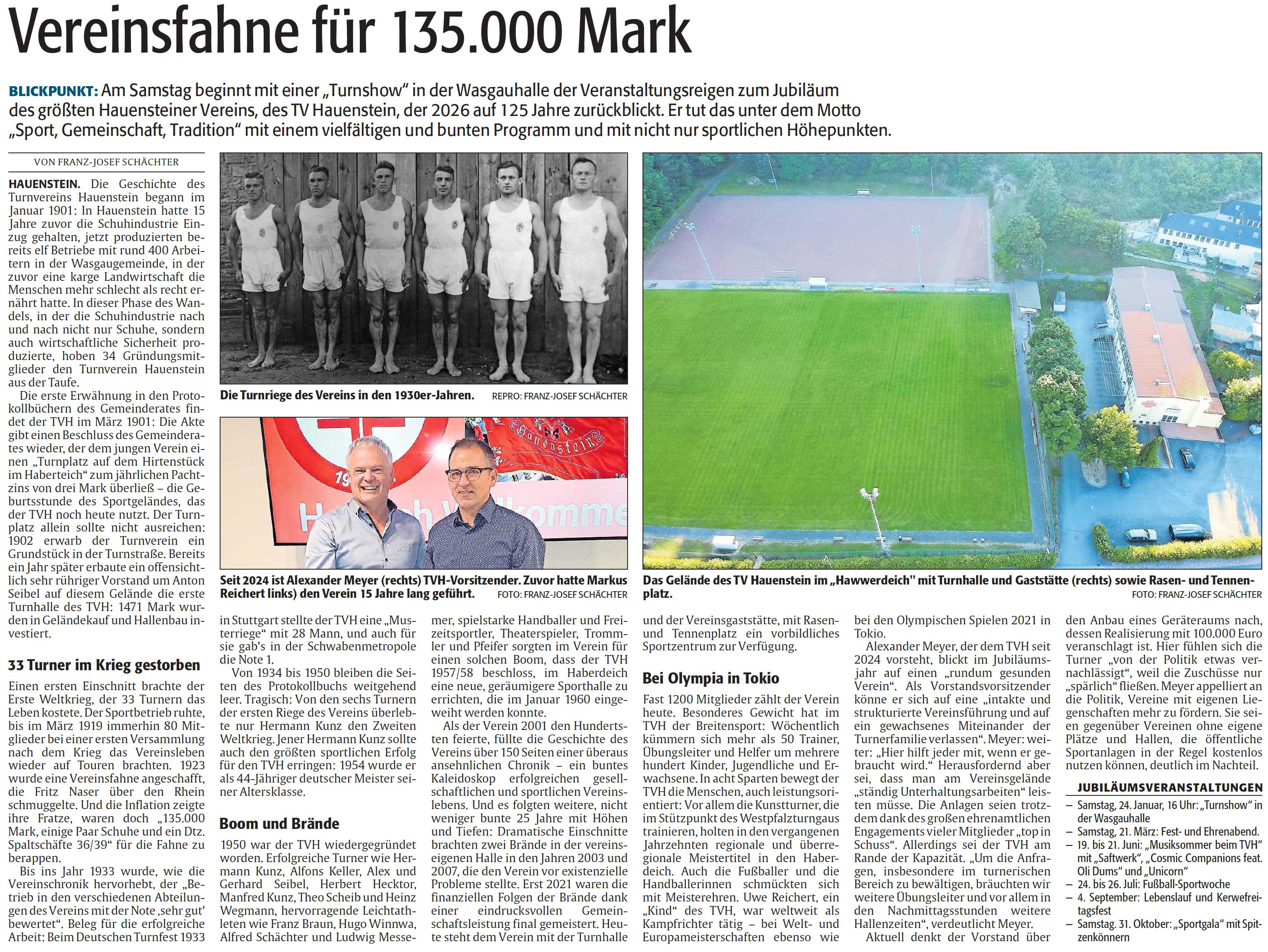 • die große Turnshow im Januar, • Rosenmontag und das Jubiläumsschlachtfest, • das Festbankett mit Ehrenabend, • der Musiksommer im Juni, • eine nationale Sportgala mit Spitzenathleten, • sowie die Präsentation des Festbuches zum 125-jährigen Vereinsbestehen.