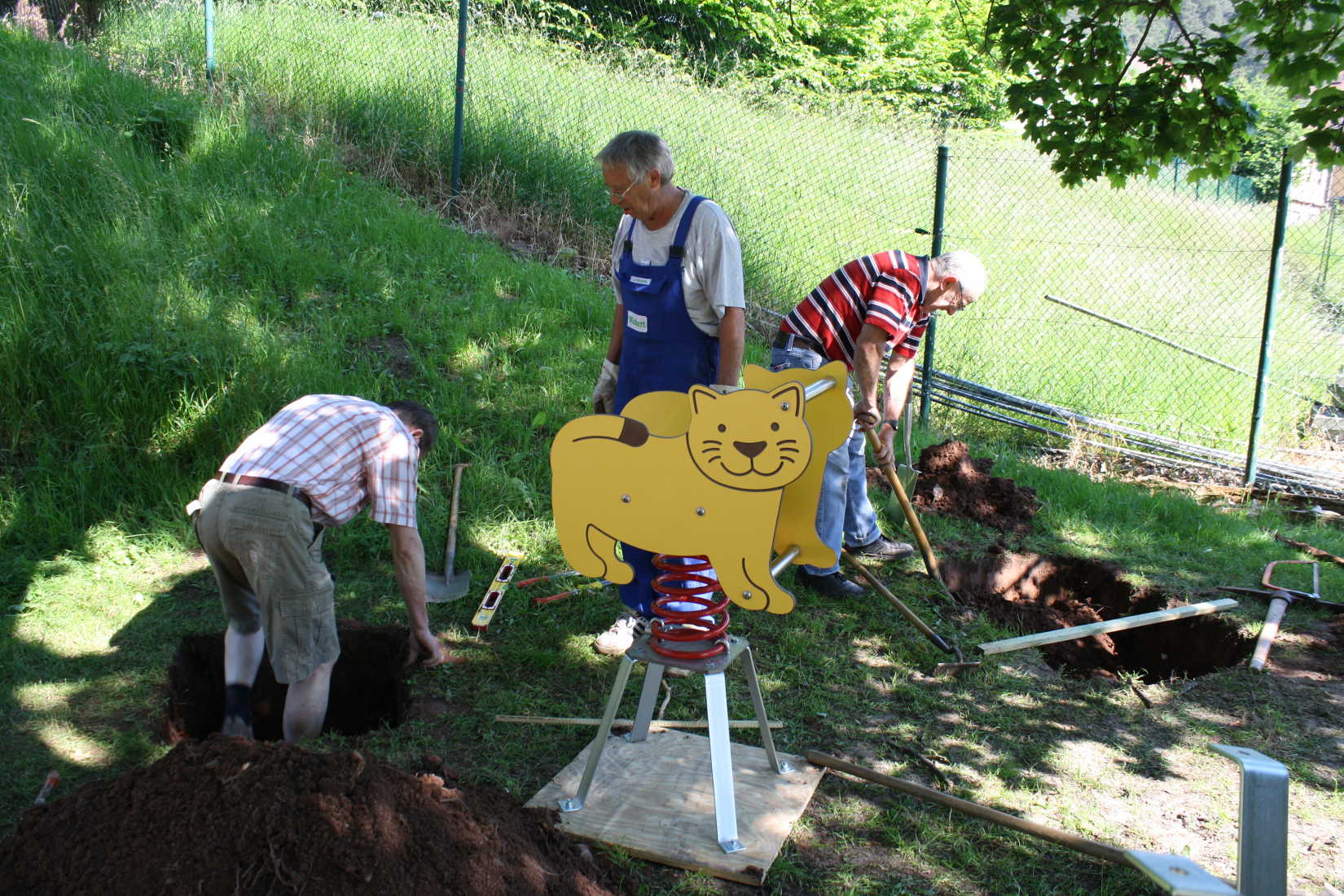 Das erste Spielgerät sitzt! V.li.: Günther Reichert, Jürgen Schmolling, Helmut Seibel |