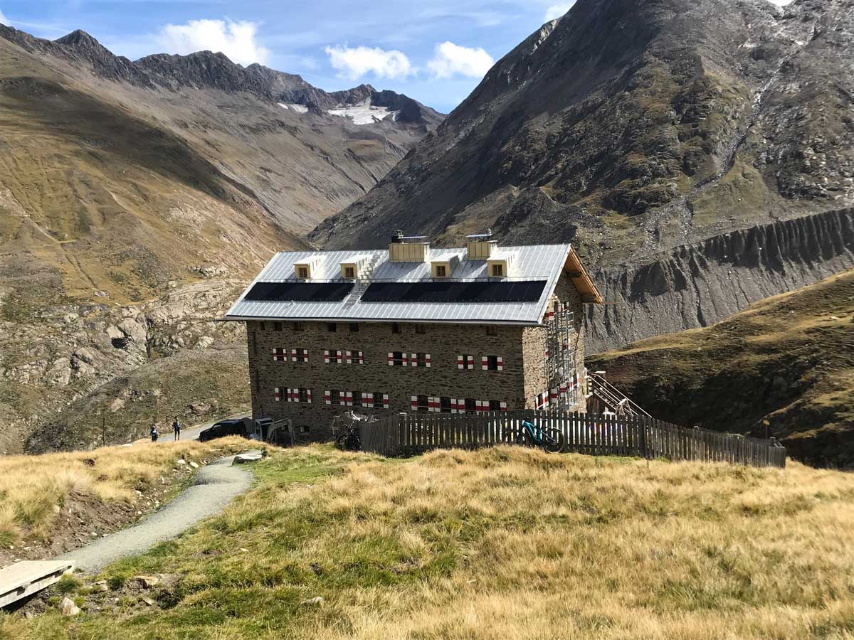 Blick auf die Martin-Busch-Hütte auf 2.501 m