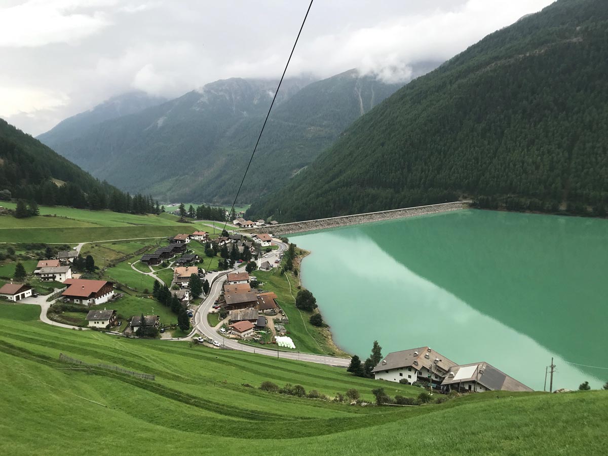 Tag 7: An unserem letzten Wandertag, ging es dann bei etwas kühleren Temperaturen auf einer Höhe von 3.019 m um 7:45 Uhr los. Bei dem Abstieg zum Vernagt-Stausee konnten wir ein bizarres Wolkenschauspiel bestaunen und nochmals die herrliche Alpenlandschaft genießen. Nachdem wir nach zwei Stunden und einem Abstieg von rd. 1300 hm am Stausee angekommen waren, fuhren wir ein Teilstück mit dem Bus nach Katharienberg. Ab hier ging es, bei leichtem Regen, wieder zu Fuß weiter Richtung Naturns. Auf dem Meraner Höhenweg, entlang den Steilhängen des Schnalstals, kehrten wir im „Hofschank Wald“ ein, wo wir uns mit einem deftigen Jausenbrettel und warmer Suppe nochmals stärkten. Anschließend ging es zur Aussichtsplattform hoch über Naturns, wo wir nach unserer letzten Bleibe Ausschau hielten, bevor wir mit der Seilbahn Unterstell nach Naturns abstiegen. Entlang der Etsch, vorbei an großen Apfelplantagen legten wir dann die letzten Kilometer zurück, bis wir um 16:45 Uhr unser Ziel in Plaus erreichten. Mit einem Ankunftsbier stießen wir auf die erfolgreiche Alpenüberquerung 2023 an, bevor es zum festlichen Abendessen ins Restaurant Caregnato ging und wir den Abend mit einem Aperol ausklingen ließen.