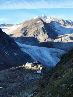 Blick auf die Braunschweiger Hütte und den Pitztal Gletscher