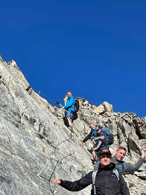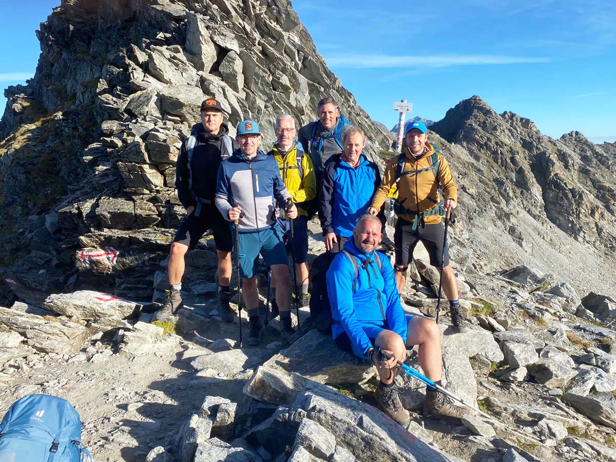 Zusammenfassend: Es war eine traumhafte Tour mit bleibenden Erinnerungen, eine Lebenserfahrung und eine Herausforderung, die in einer tollen und harmonischen Gruppe riesen Spaß gemacht hat.Statistik: 103 km zu Fuß, 5.728 hm aufwärts und 7.639 hm abwärts.Ein riesengroßer Dank auch an unseren Reiseleiter Peter, der von A-Z alles super organisiert hatte. Es war uns eine Ehre, dass Du uns als „alter Hase“ über die Alpen geführt hast. Danke!