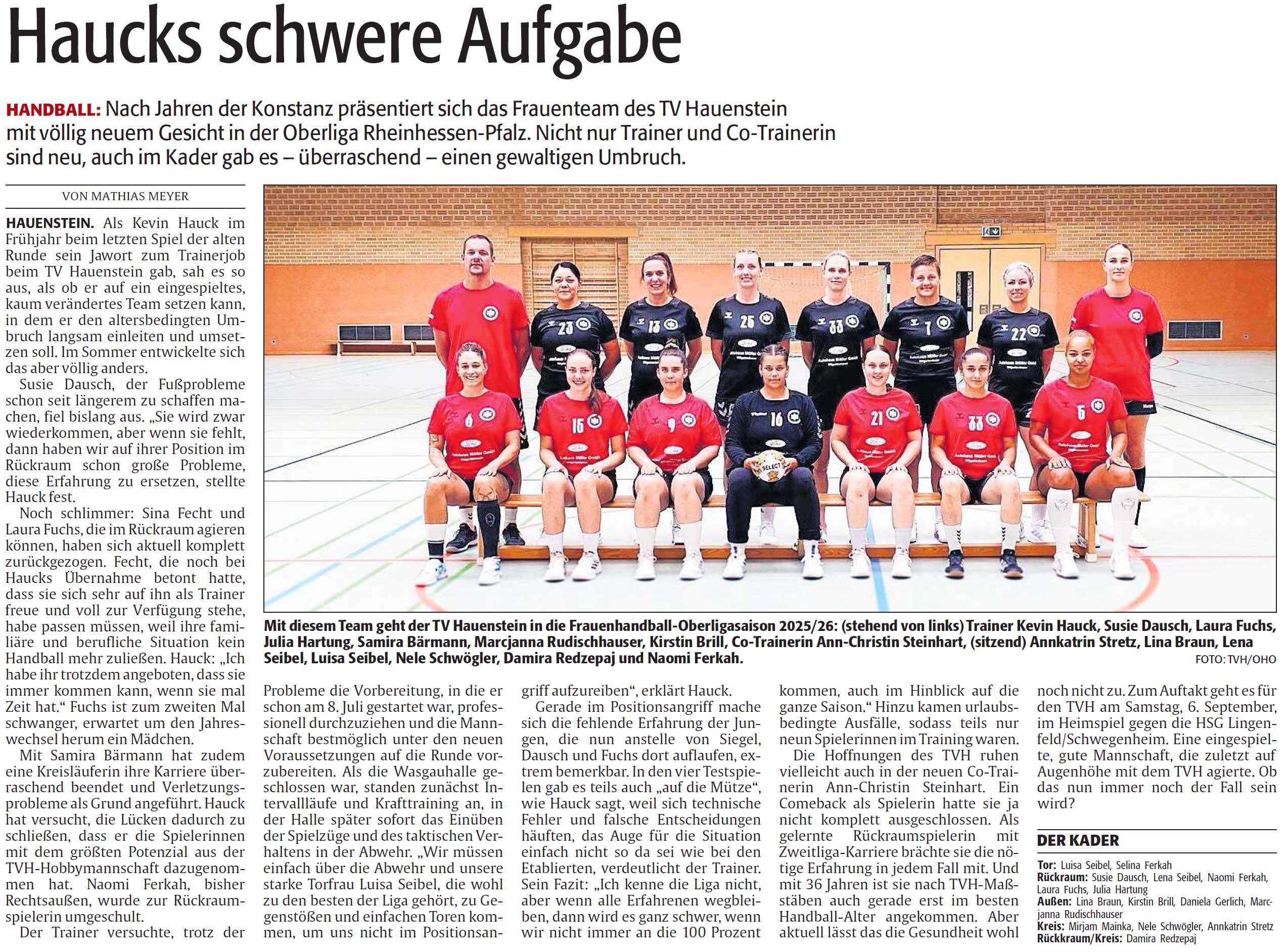• Rheinpfalz vom 16.06.2012: "Saar zum TV Hauenstein" (Handball)