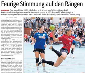 Handball, Bericht Rheinpfalz vom 22.10.2016: "TVH-Frauen in Lingenfeld zu Gast"
