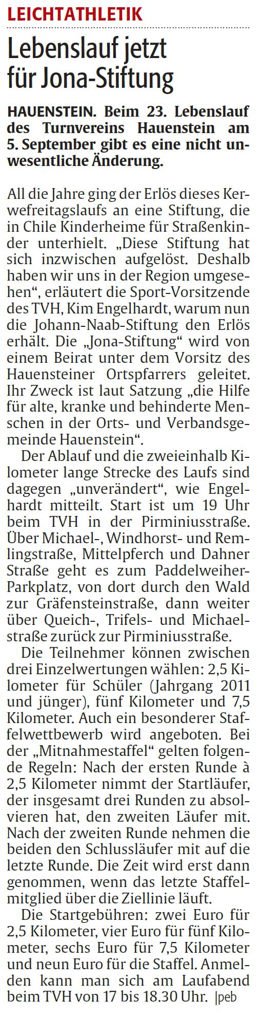 • Rheinpfalz vom 29.08.2012: "Jeder Läufer hilft chilenischen Kindern" (Lebenslauf)