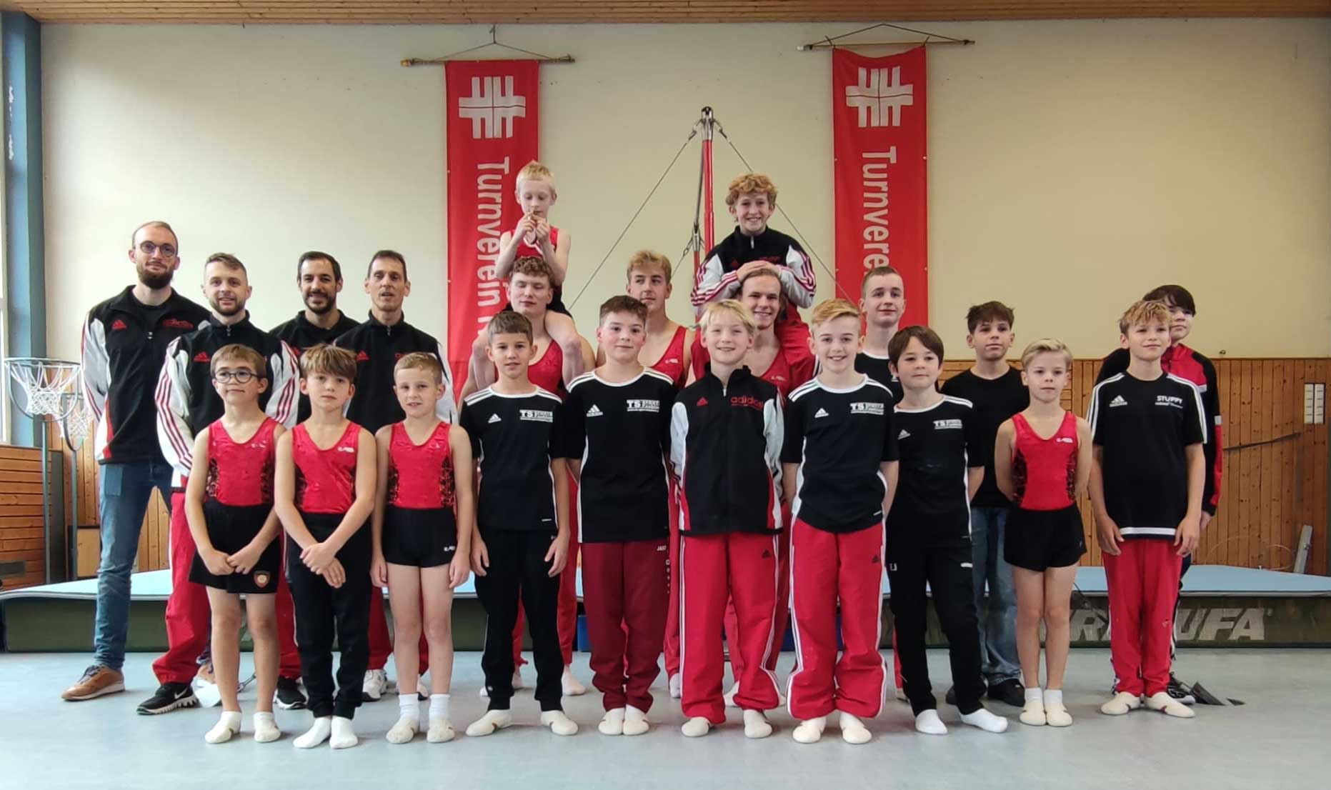 Am Samstag, 04.11.2023, fanden die diesjährigen Mannschafts-Gaumeisterschaften der Westpfalzturngau in „gemütlicher Runde“ beim TV Hauenstein statt. In der etwas kleineren Halle in Hauenstein wurde der Wettkampf daher aufgeteilt in Boden, Pferd und Ringe – nach einer kurzen Umbauphase folgten Barren, Reck und Sprung. Es gab an diesem Morgen Höhen und Tiefen an den jeweiligen Geräten. Im jahrgangsoffenen Wettkampf trat der TV Pirmasens an. Moritz Schumacher, Silvian Teubert und Julian Burkhart holten 145,40 Punkte. Der TV Hauenstein setzte sich im Wettkampf der Jahrgänge 2008 und jünger gegen den TV Lemberg durch. Lukas Hoffelder, Malte Nutz, Anton Seibel, Julius Meßmer und Jonas Schächter sammelten 264,70 Punkte – sieben mehr als die Konkurrenten Erik Jüllig, Nils Vierling, Samuel Hartmann und Luca Meyer. Im Wettkampf der Jahrgänge 2014 und jünger erreichten Levi Göttmann, Lui Seibel, Henry Wolf, Joris Memmer und Max Schumacher vom TV Dahn 231,20 Punkte. Alles in allem war es ein „aufschlussreicher Test für die Pfalzmeisterschaften“, so Trainer Jochen Stengel. Die kommende Woche wird nun genutzt, um Übungen umzustellen oder zu verbessern. Herzlichen Dank für die zahlreichen Zuschauer und Fans, die unsere Turner wieder tatkräftig angefeuert haben. Allen Helfern, den Kampfrichtern sowie dem Turnverein Hauenstein als ausrichtendem Verein ein herzliches Dankeschön.